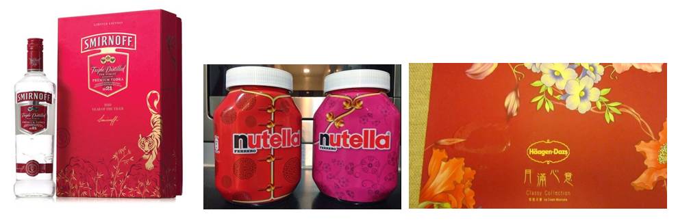 As foreign brands try to connect, there are a few obvious routes to be taken that align with traditional Chinese culture, such as identifying with the Chinese New Year holiday during the first quarter of the year. Color palettes of red and gold are common across FMCG brands for these promotions, as well as revamped graphic styles that highlight popular elements like gift-giving or the new year’s Chinese zodiac animal.